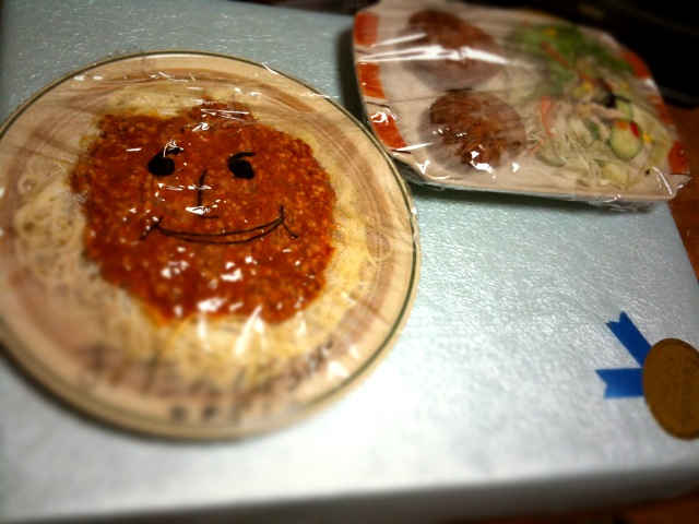 スパゲティは食べましたけど、おかずとして用意されていたハンバーグは夕食に。