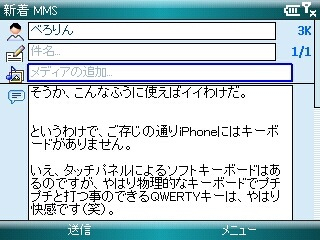 なので試しに、X02HTで打った文章をメールでiPhoneに送り、その文章をiPhoneで再編集してブログにアップしてみる、、、