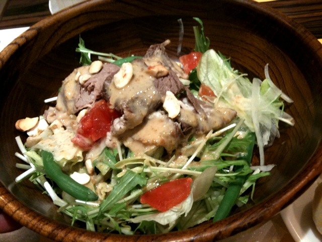 あ、おかずはランチメニューのサラダっぽいやつ(牛肉とカシューナッツの胡麻風味のサラダ)。