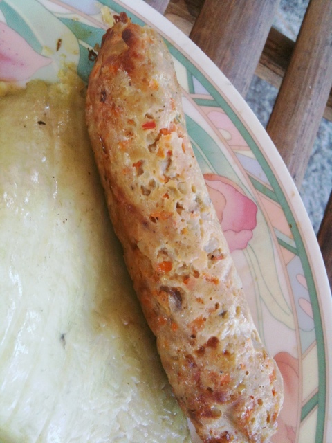 もう一つは、魚と野菜をソーセージ形状にして、焼いたのかな? 塩味で美味しい。