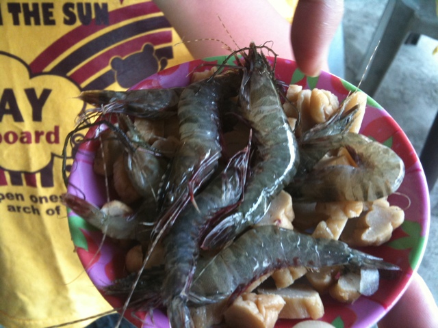 本日のランチは、釣った魚と同じのを塩味で揚げたもの。それと、鶏の足を煮たの(?)。