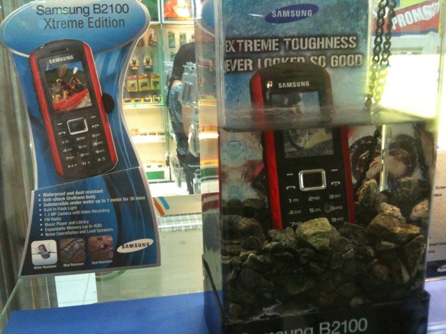 サムスンの携帯電話には、防水のモノもあるんですね。そのうち日本でも出るかな?