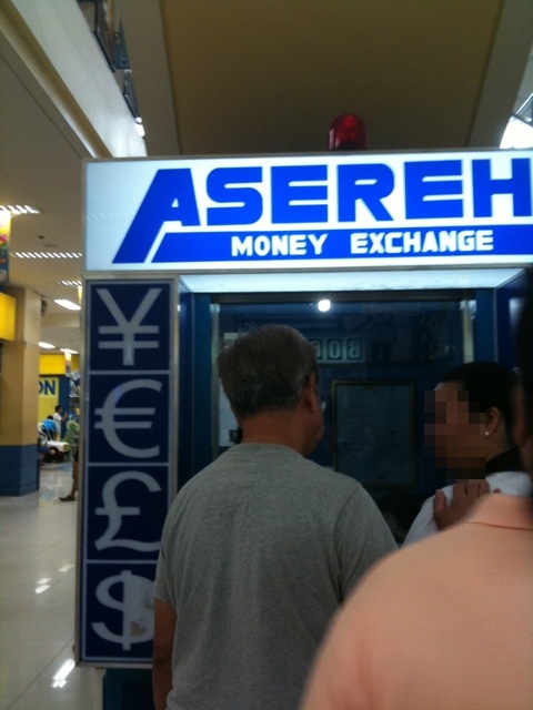 始めに両替えを。日本のスーパーには、両替所って無いよなぁ?