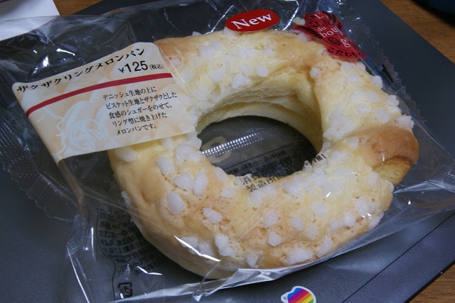 またカフェ・オ・レ メロンパンにしようかとも思いましたが(笑)、ちょうど振り込みをしなくてはいけないものが、ファミリーマート取り扱いだったので、ファミリーマートの『ザクザクリングメロンパン』!