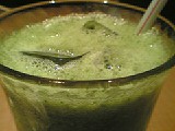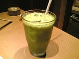 この緑色のドリンクは、「オレンジジュースにほうれん草を入れた」ジュース(正式名忘れ)。