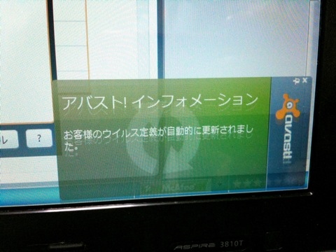 プレインストールソフトとして、『McAfee』が入っていたのですが、どうも更新オススメのメールにある価格が二つあるので(キャンペーンだったみたい)、何となく嫌な感じ、、、で、EeePCと同じく、『avast!』にしてみました。無料ですので(笑)。