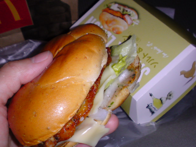 夜遅くまでお勉強でしたので、行きの車で食べました。えぇ、運転しながら。なので、暗くて何が入っているのか、よく分からなかったのですが、、、チーズも入っていたのですね(^-^;)