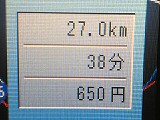 「行き」は、画像左の650円を払って約30分(内、高速道路10分:19.6km)走った「27km」。