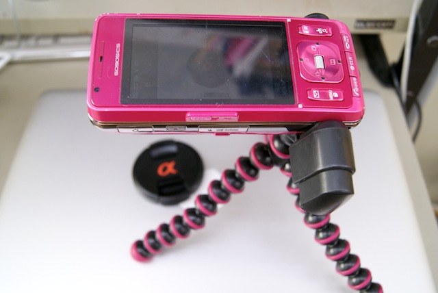 携帯電話用の三脚と、三脚用携帯電話ホルダーです。