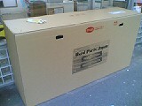 シートが届くと、仕事がちょっと忙しくなって(仕事中!(笑))しまったので、『べろりんタイヤセンター』の物流センター(笑)に、無理矢理間借り。自分よりも大きな段ボール箱を収めるのに一苦労でした(笑)。