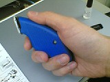 さすがに携帯カメラの画像では違いが分かりませんが(苦笑)、「鋭角な当たり」は若干解消されました。刃が薄いので、仕方の無い所ですね。
