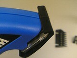 駆動はアルカリ単三乾電池。電源スイッチは、刃のすぐ下側に位置しています。