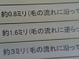 アタッチメントを取り付けると、「約1.6ミリ(毛の流れに逆らって)」あれ? 同じアタッチメントでも、「毛の流れに沿って」トリマーを入れると「約3ミリ」だそうです、、、たったそれだけで倍近い差が出てしまうということは、丸刈りをすると“虎刈り”は確定ですね(笑)。