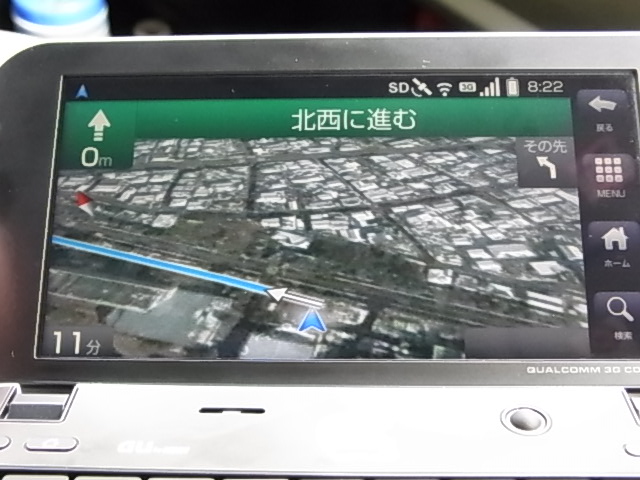 『Google Maps』(の一部機能なんです、このアプリ)らしく、航空地図でもナビゲーションしてくれます。カーナビとしてはものすごく見づらいですが(笑)。