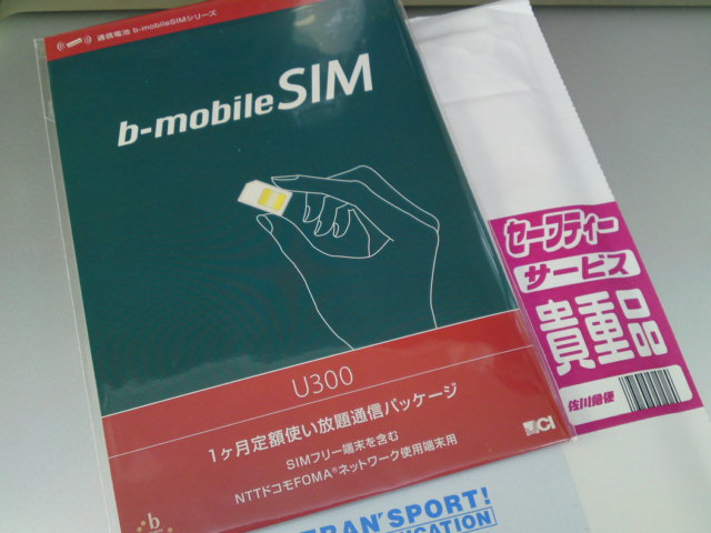モバイラー御用達(?)、『b-mobileSIM U300 1ヶ月使い放題パッケージ』。