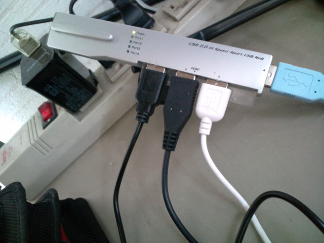 USBハブに各種ケーブルを挿し込んで、、、