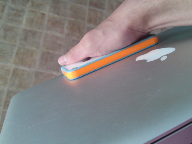 なので、そこらに置く時でもちょっと気を使うのですが、『iPhone 4』はフラットな筐体な為に、裏側を下に置くとカメラレンズが直に当たってしまいます。ちょっと凹ませておいてくれるか、レンズ周りを盛り上げておいてくれればいいのに(困)。
