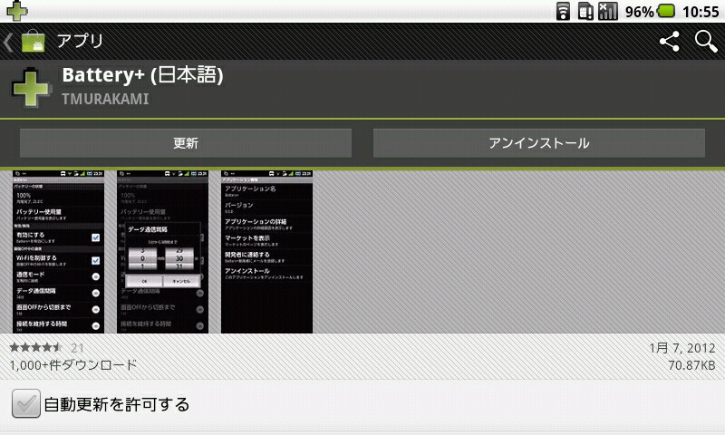 Twitterで、「この手のアプリでバッテリー消費を抑えられる」と教えていただいたので、同種のアプリの中から使い勝手の良さそうな『Battery+(日本語)』を入れてみました。