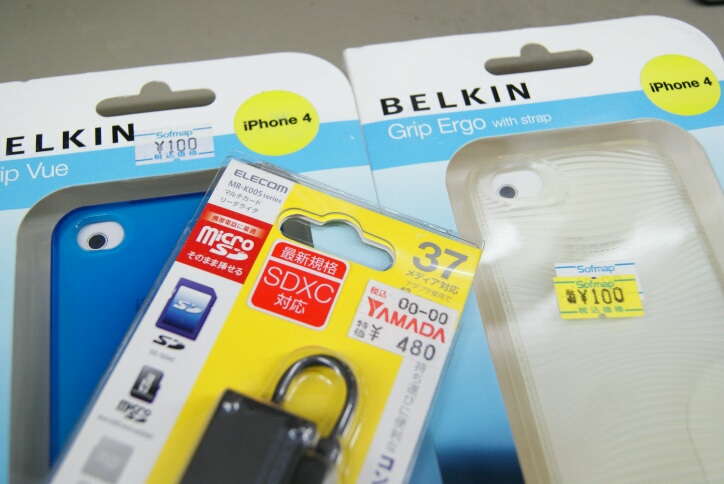 おそらく『iPhone 4』専用だから安売りされていた、BELKINのケース二点。各100円でした(喜)。
