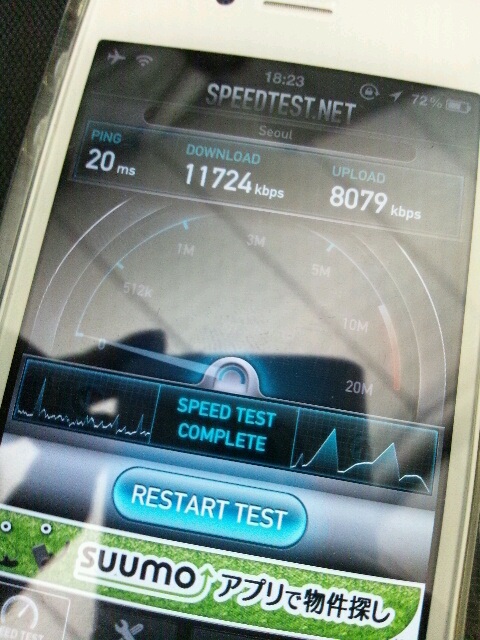 フリーのWi-Fiに繋がったんですけど、メチャクチャ速い! 家のより速いです(笑)。