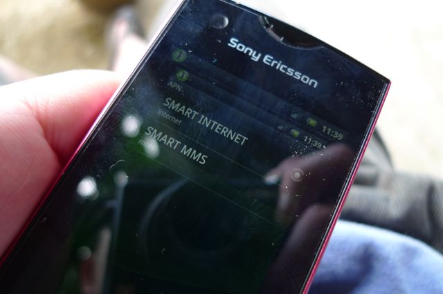 持って行ったドコモ版の『Xperia ray』に、現地の携帯電話会社SMARTのSIMを入れてみたら、なんだか「設定メッセージ」って通知がきました。SMSだったのかな?
