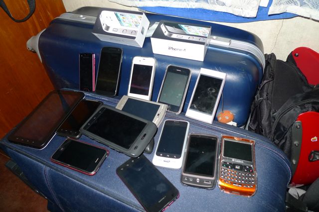 荷物に隠して(?!)持ち込んだスマートフォン達。ダブりで写してないのもあります(笑)。
