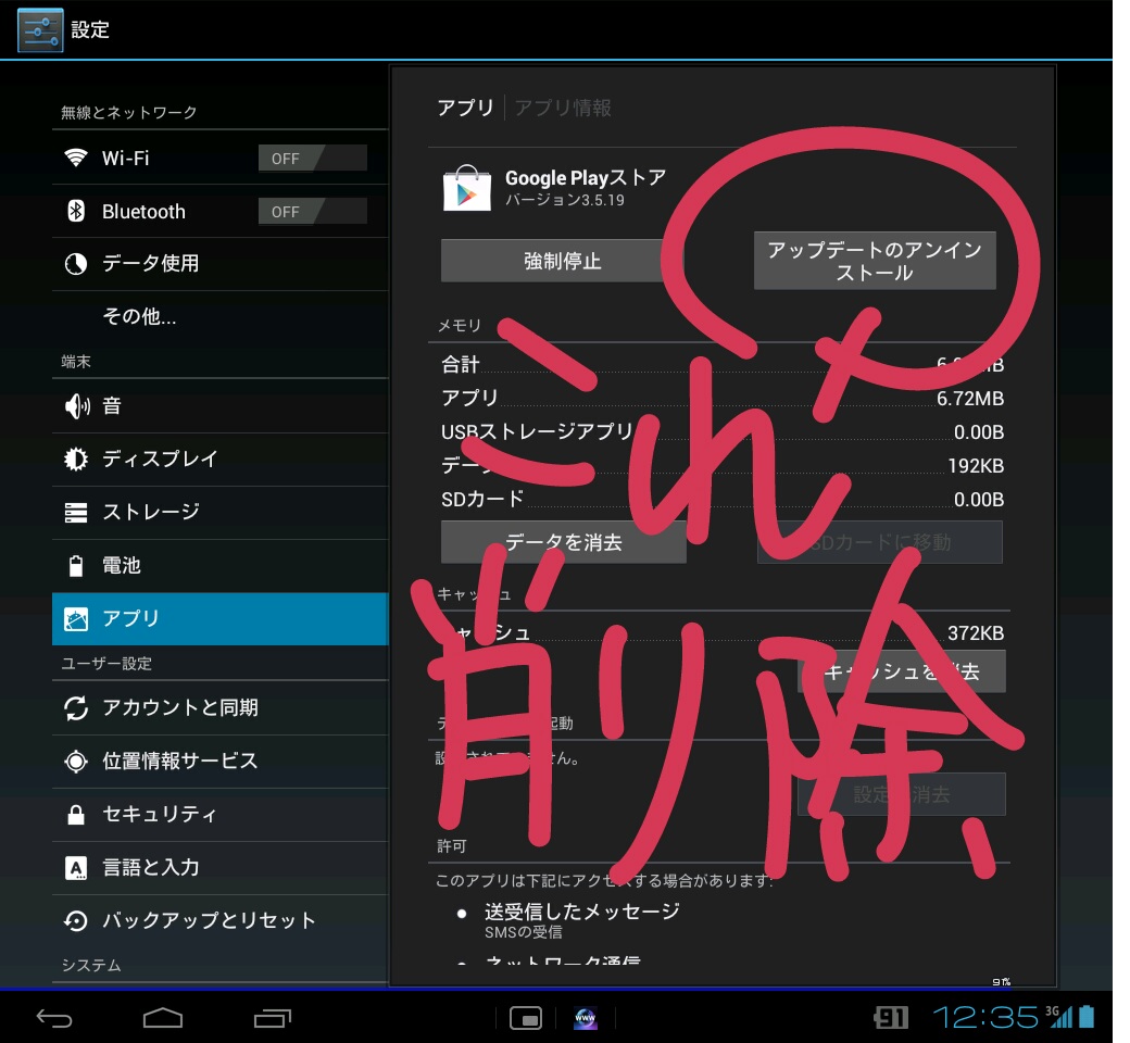 ネットでは、「アップデーターを削除」すれば直るとかいう情報が出ており、OSのアップデータを削除するなんてどうすれば、と思っていたのですが、ソニーに確認を取ったところ、削除するのは「Google Playストア」の方でした。