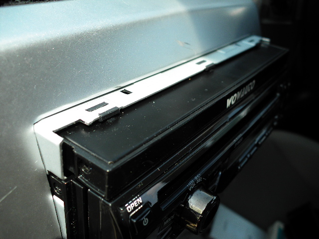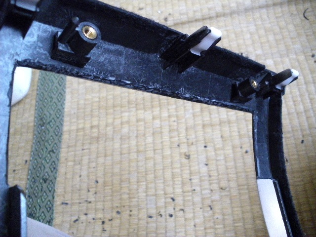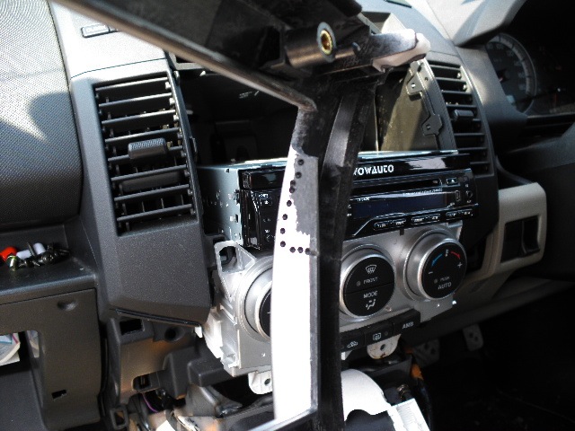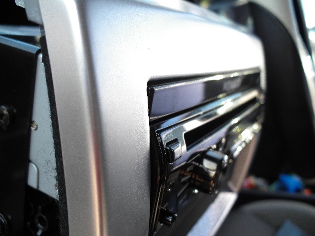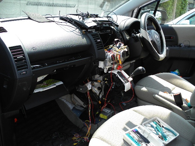 うろ覚えながらも、サクサクと取り外したインパネに取り付け。「ありゃ、インダッシュモニターに思い切り当たるよ、というか、幅が1DINより大きいじゃん?!」というわけで、思い切ってインパネを削りました(苦笑)。
