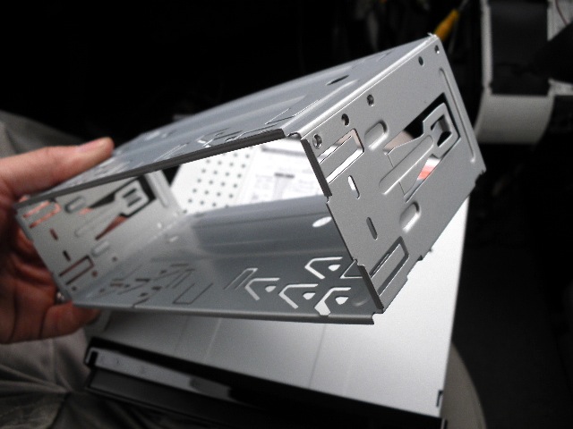 で、本体にはめてあったこのケース、使い道が分かりません。1DINよりも遙かに幅があり、どうやってもコレを使って組み込むのは出来なさそう、、、まあ、この辺から嫌な予感が漂います(笑)。