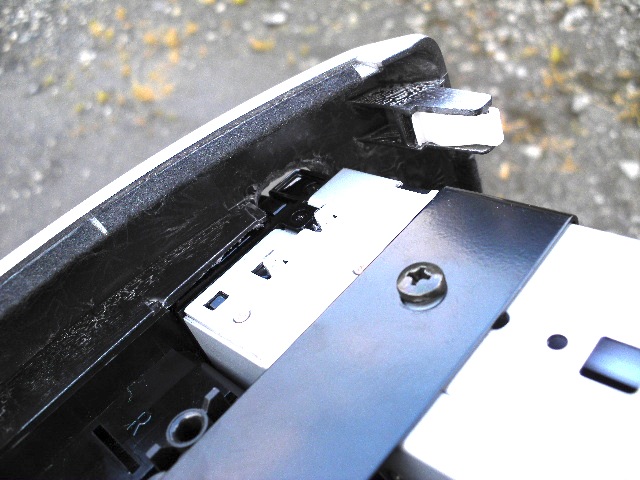 付属していたフロントパネルを見てみると、丈夫に切れ込みがあります。そう、この位置にアームが出てくる構造のようです。