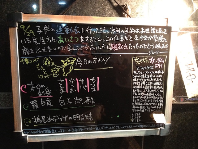 店内にある、「本日のおすすめ」。こういうの好きです(嬉)。