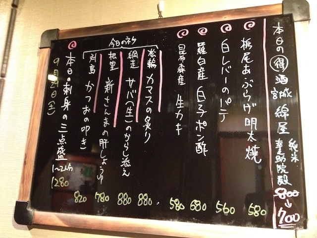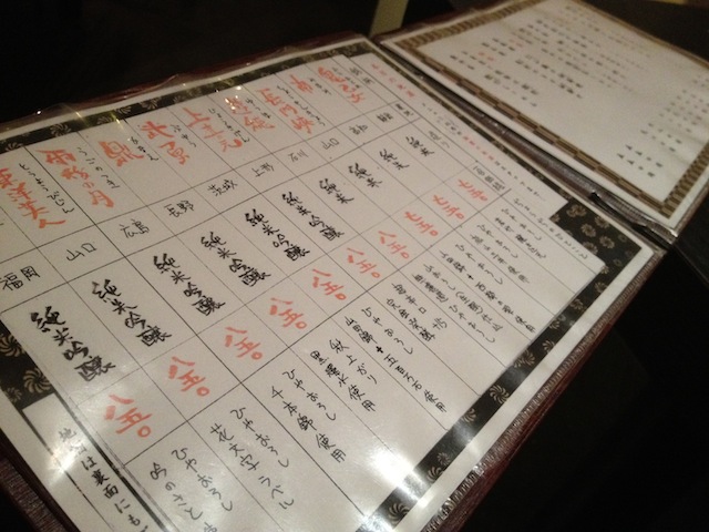 メニューはこんな感じ。あ、苦手な日本酒ばかり(笑)。えぇ、それがウリのお店ですので、いつもは飲まない日本酒をいただいてみましたよ。