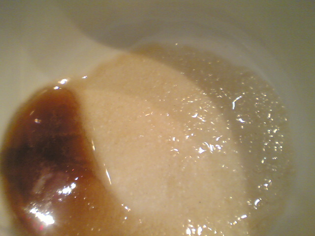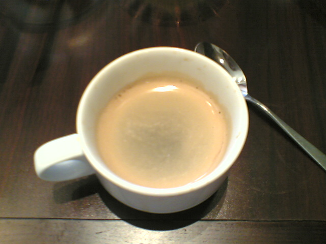 二杯目はエスプレッソ本来の飲み方、「砂糖を溶け残るほどに入れ」て飲んでみました。