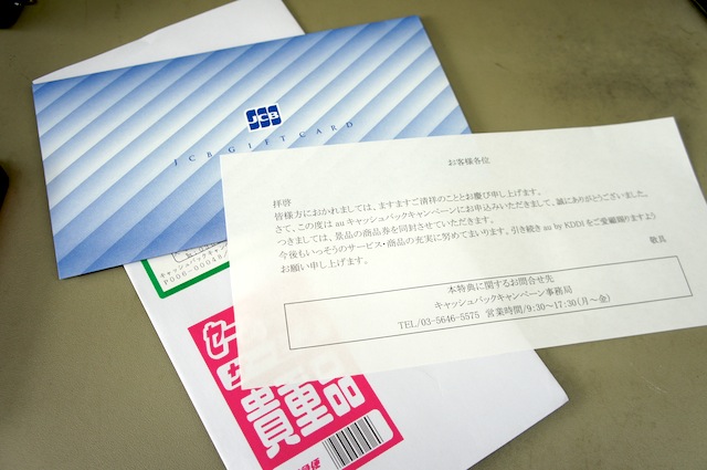 先月に貰った端末の分。あら、この時のキャンペーンって、au自体のものだったみたいですね。てっきりケー◯デンキの施策かと思ってました。