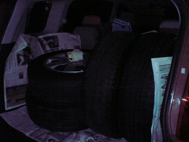 ご注文をいただいたスタッドレスタイヤを、周りに怪しまれないうちにさっさと積み込みます(笑)。