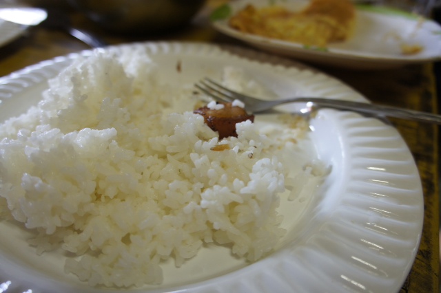 昼食のお米の中に籾殻(もみがらってこんな字?)が残っていました。