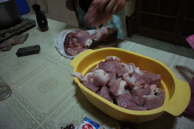 日本のとんかつ(ロースカツ)を作る予定で市場でたくさん買って来た豚肉でしたが、多数の来客がありそんな時間も無くなってしまったので、小さめのカツを作る事に変更。