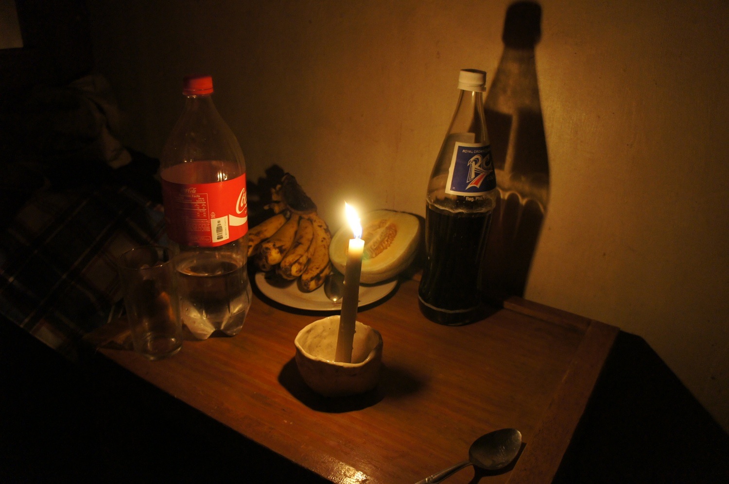 寝る直前になって、停電。電気を使い過ぎてブレーカーが落ちたかと思いました(笑)。