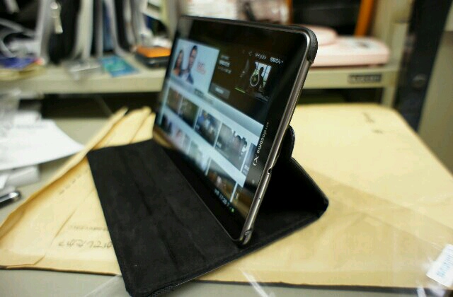 一見何だかよく分かりませんが、『SC-01E Galaxy Tab 7.7 Plus』のスタンド機能付きケースです。おまけに液晶保護フィルム(液晶じゃないけど)とタッチペンも付いてました。