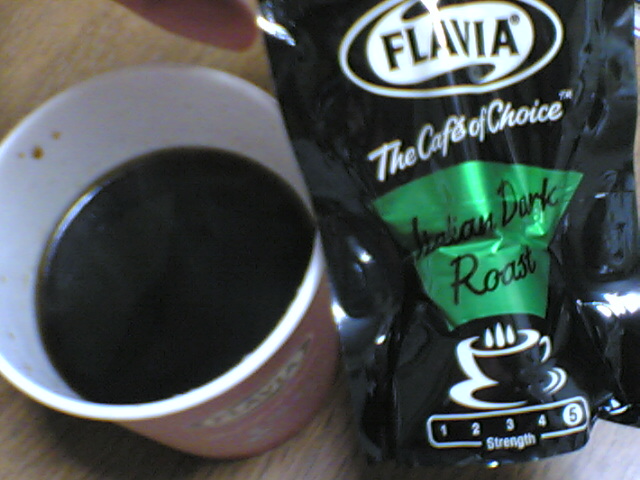 現在使用しているコーヒーサービスのラインナップでは、最も苦味の強いコーヒー、『イタリアンダークロースト』と一緒に(喜)。