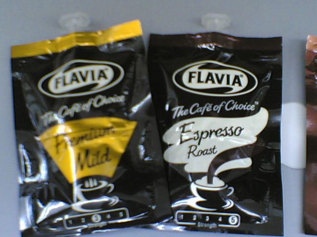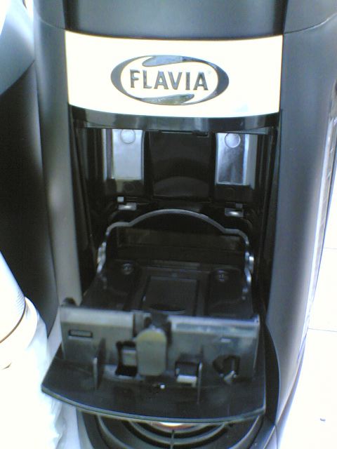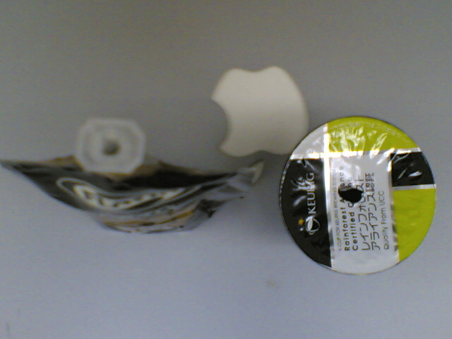 『キューリグ』はプラカップなので上下に穴を開けますが、『フラビア』はパック式。下側はお湯の熱(?)で自動開口。中にはフィルターが見えます。