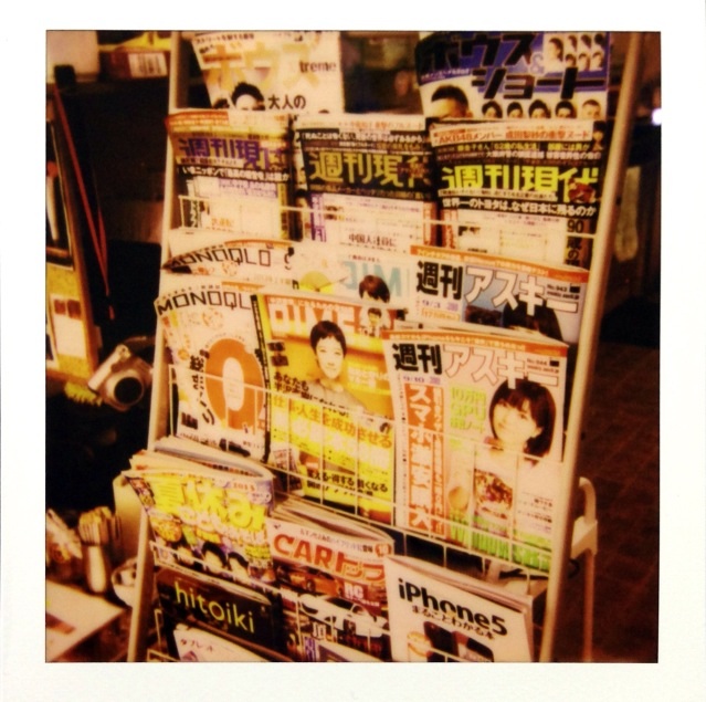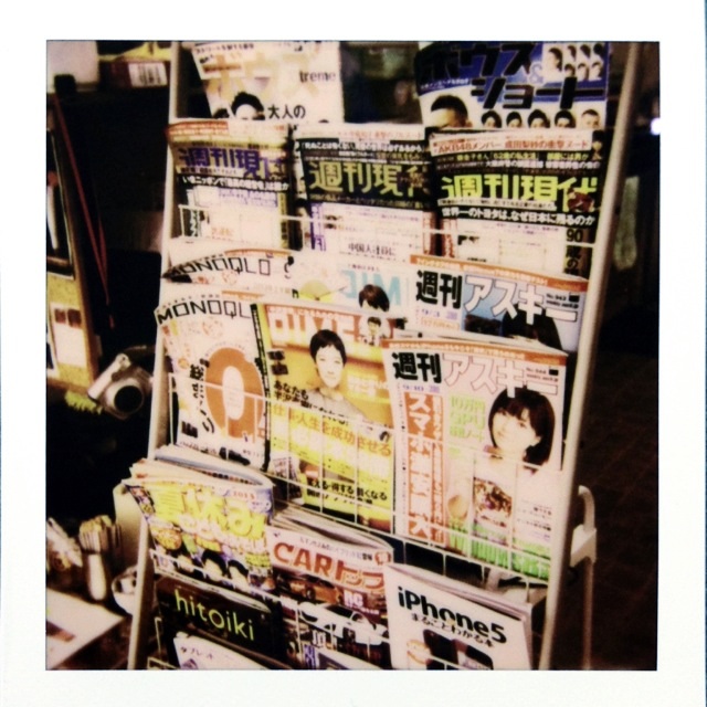 現行のポラロイドカメラ用フィルム『Impossible PX680 color protection』で撮った写真。カラフルなはずの雑誌の表紙を写したのですが、とりあえず“赤い”です(苦笑)。
