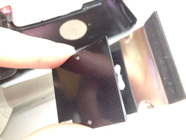 裏のスクリーン(圧板、プレッシャープレート というらしい)の部品、適当にひねったら外せました(嬉)! 上に上げてやれば、爪が外れますね。