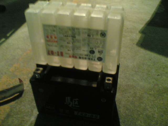 四輪車用の大きなバッテリーと違い、二輪車用は小さくて軽いので、持ち上げるのも簡単。