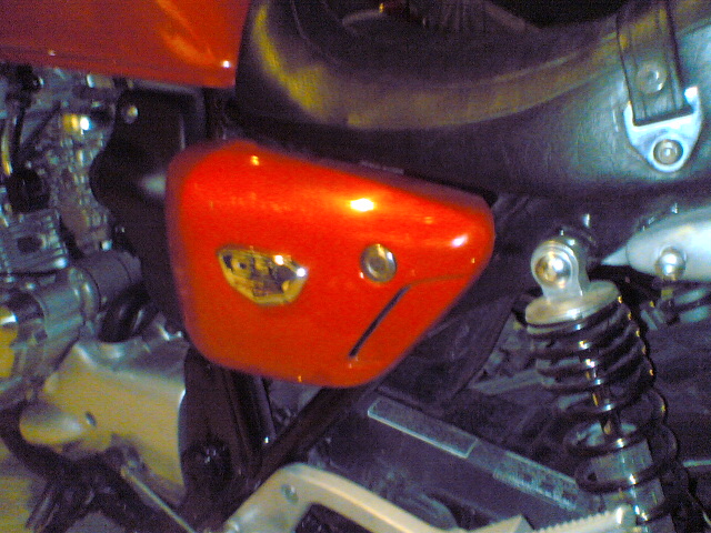 真っ赤なタンクとサイドカバー、左右出しのマフラーは私好みです。
