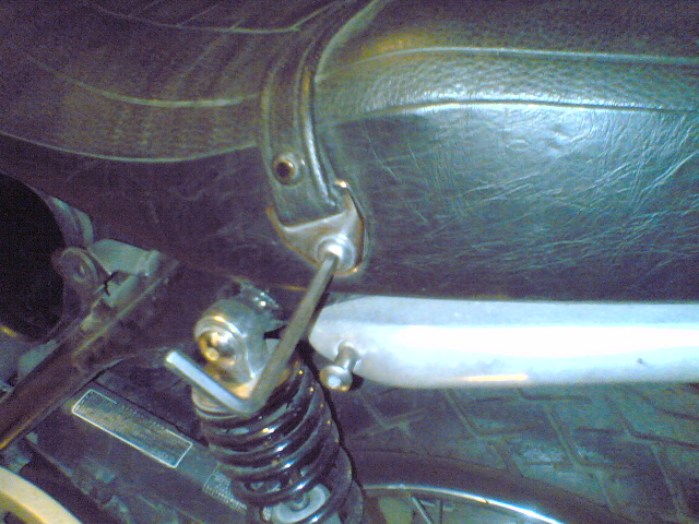 持参していなかった(4輪じゃあまり使わないし)ので、車載工具にあった、「六角レンチ」でシートを取り外します。