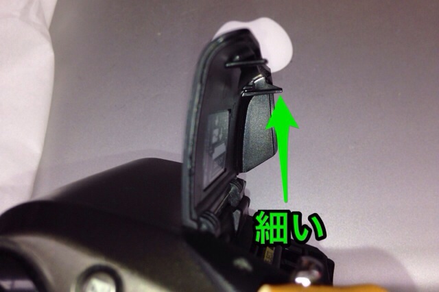 メモリーカードスロットの蓋に、開けると電源を落とすような古典的な物理機構があるのですが、その棒とスイッチ双方がとっても細い!