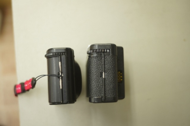 サイズは一回りの違いといった所ですが、レンズ周りの形状は大きく違います。ちょっとの差なんですけど、鞄のポケットからの出し入れには、この角ばった部分が引っかかります。