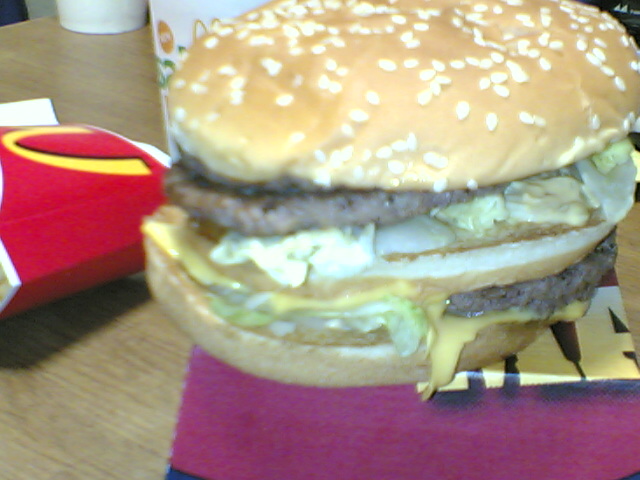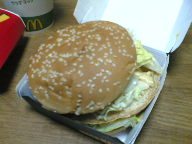 もっと“高くそびえるハンバーガー”を期待していたのですが(笑)、ただビックマックのハンバーグが二重になっているだけのモノ。