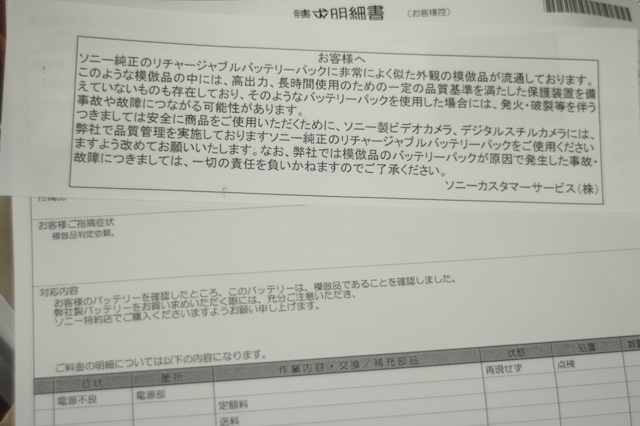 というわけで、「純正品」として購入したバッテリーが「模倣品」だったことが、修理代金を支払って確定しました。